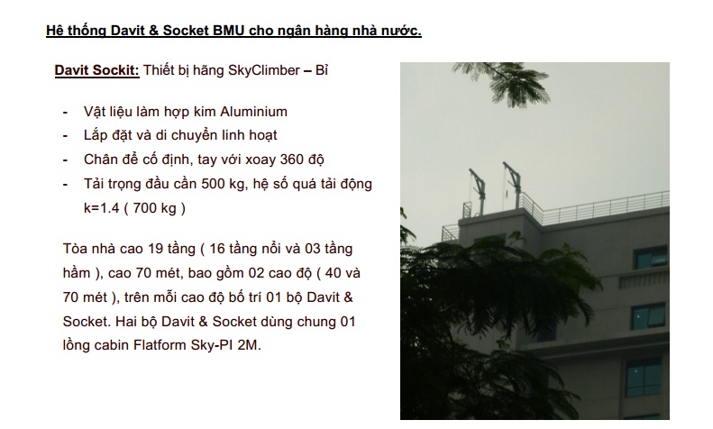 Lắp đặt hệ thống Davit & Socket vệ sinh mặt ngoài trụ sở làm việc Ngân hàng nhà nước