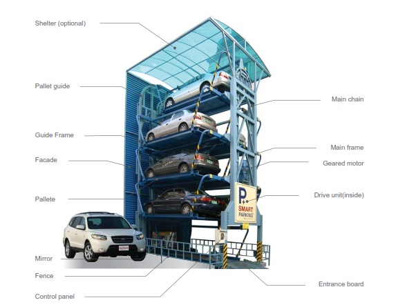 Mô hình trạm đỗ xe đơn giản lắp đặt tại các trung tâm thương mại, tòa nhà có không gian hẹp.